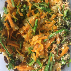 Rallar la zanahoria y añadir a la sartén. Cocinar un par de minutos.